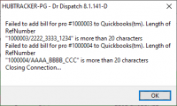 When you close this window, error messages will be duplicated in the exsport window in the message bar and directly in each grid line next to the document containing the error.