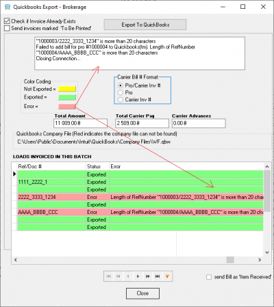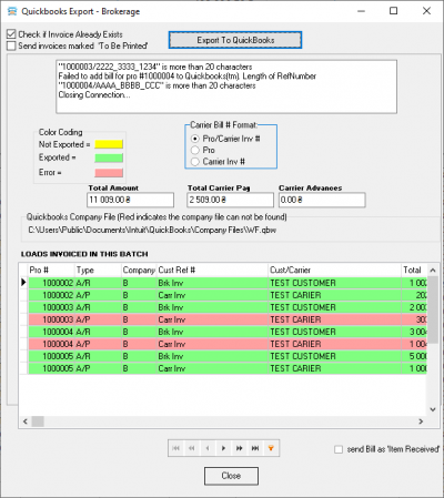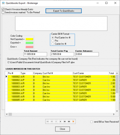 Expection: A “Quickbooks Export - Brokerage” window will appear
