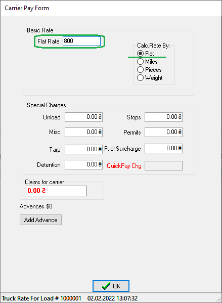 Check that the Calc.Rate By: radio button is set to Flat