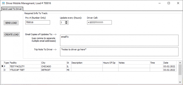 Expectation: A new “Driver Mobile Manager Load” window will appear.