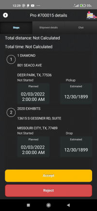 Expectation: Regardless of the method of sending the load (through the service or “forced”) after a short period of time (about 2 minutes in case of push sending and about 6 minutes when sending using the service) in the mobile application, a message should appear on a yellow background about the presence of an unprocessed load.
