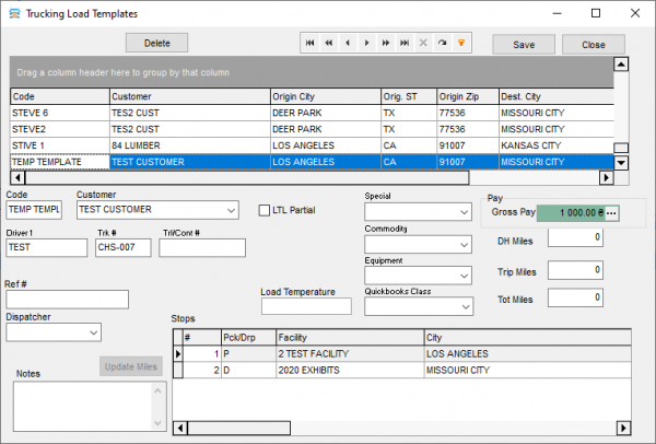 Expectation: The “Trucking Load Templates” window appears
