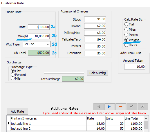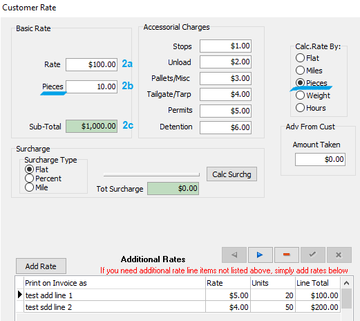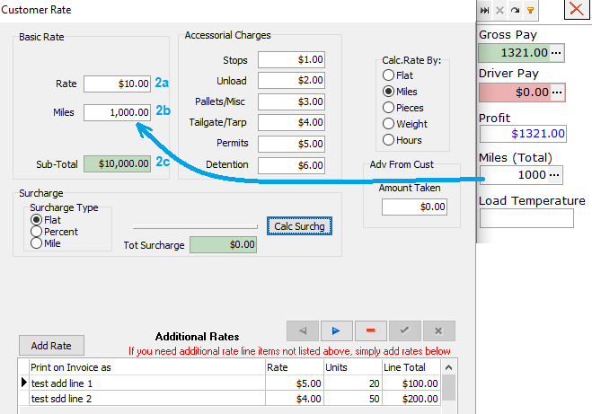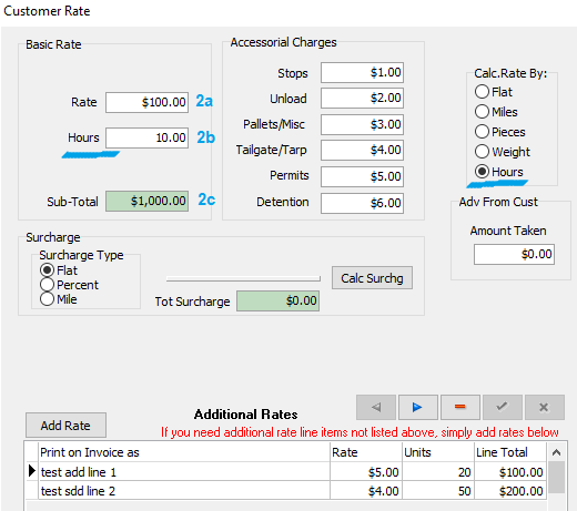 • Rate (2a) * Miles (2b) = Sub-Total (2c)