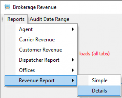 Action: Click Menu “Report → Revenue Report → Detail” Expection: “Output option” window will appear.